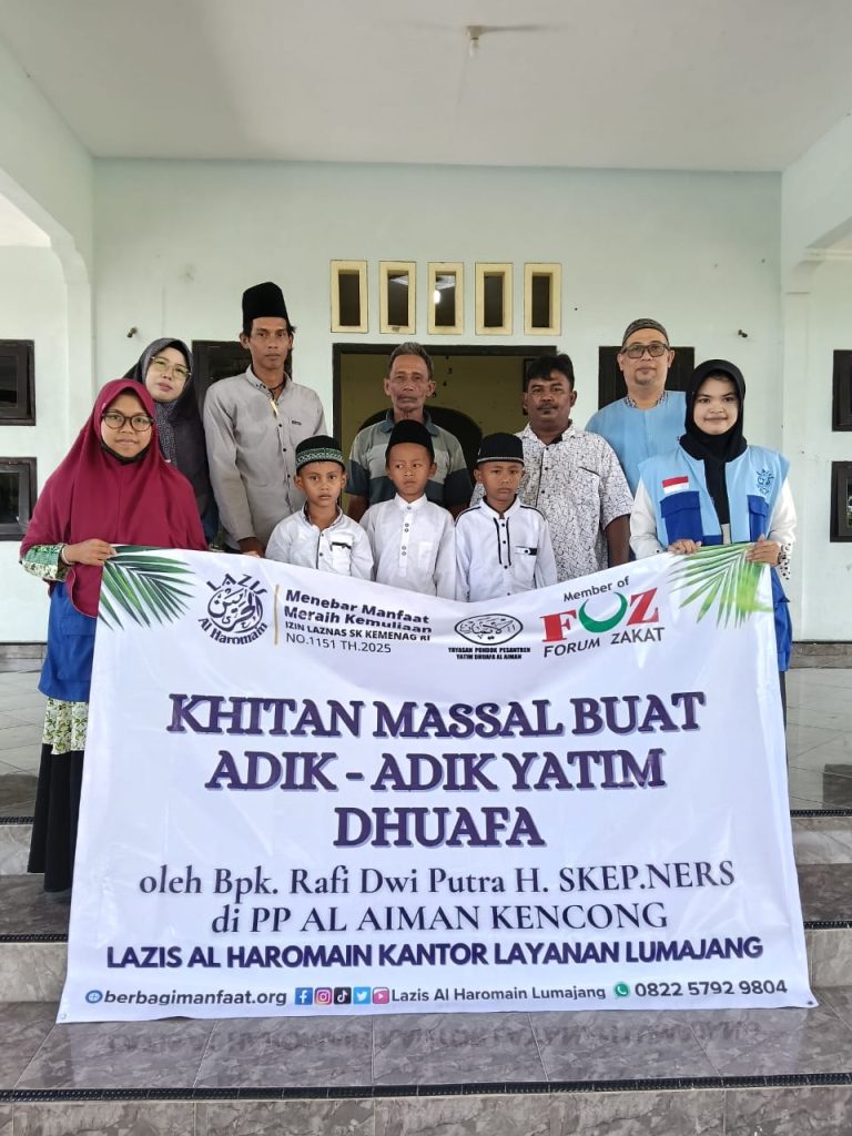 Jember – LAZIS Al Haromain bersama PP Al Aiman Kencong Jember dan Bapak Rafi Dwi Putra H,SKep. Ners sudah melaksanakan Khitan Massal untuk Adik-adik Yatim Dhu’afa di PP Al Aiman Kencong Jember, Rabu (24/12/2025). Adik-adik Yatim Dhu’afa selain Khitan Gratis juga mendapatkan Paket Sakoci, Uang Saku dan Snacks. Jumlah Adik-adik Yatim Dhu’afa yang dikhitan 3 anak. (Ardha)